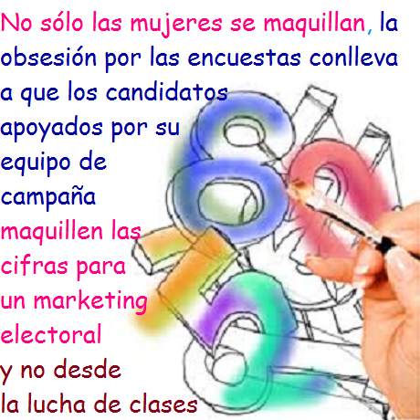 Encuestitis en tiempos electorales02 Jun 16 - 14:10 Reflexionando sobre la encuestitis o padecimiento de los tiempos electorales. Es una obsesión por las encuestas a favor y con el síntoma principal de la descalificación en los debates, en las redes sociales y en todos los ámbitos posibles. ![]() Mientras que las encuestas elaboradas apropiadamente con una metodología estadística son útiles porque brindan información significativa. Sin embargo, se sabe que frecuentemente se realizan con filtros y cuestionarios tendenciosos para favorecer el resultado que se quiere obtener. ![]() Por ello, en estos tiempos no sólo las mujeres se maquillan. También la obsesión por las encuestas conlleva a que los candidatos apoyados por su equipo de campaña maquillen las cifras para un marketing electoral y no desde la lucha de clases. ![]() #estadísticalore |